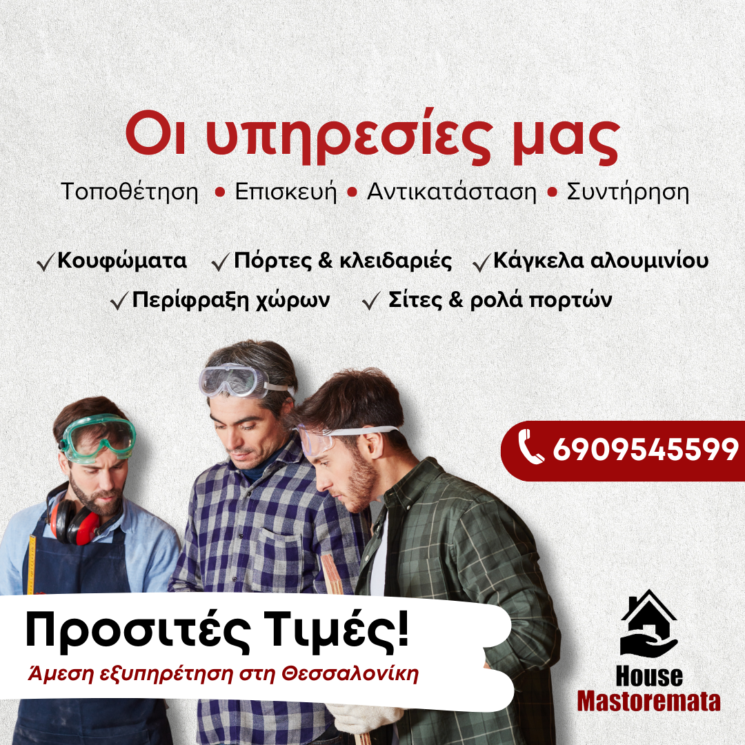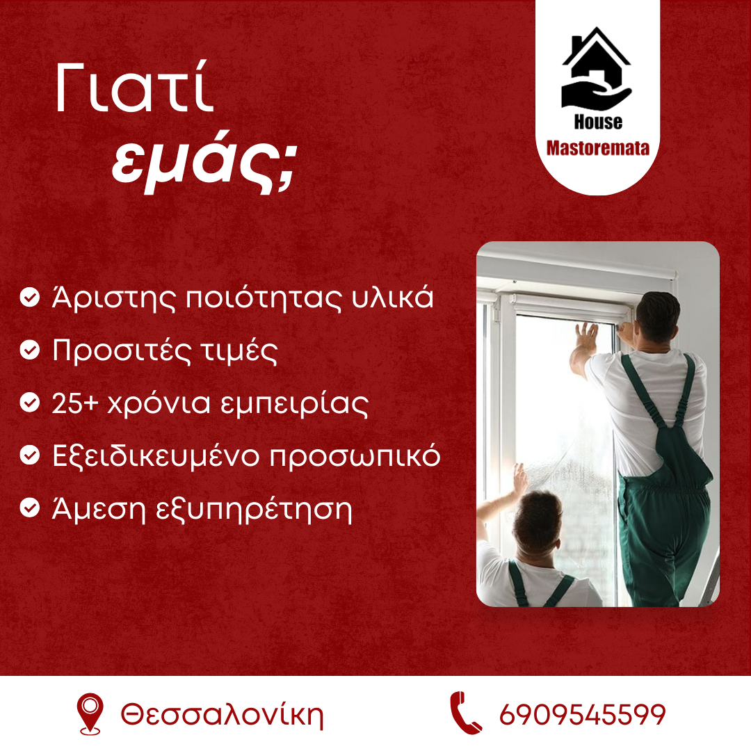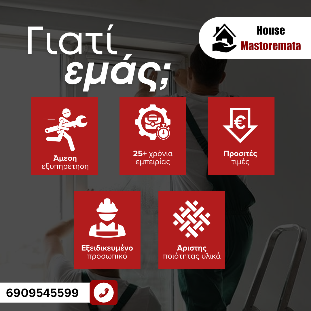 Η ομάδα του Housemastoremata, με πολυετή εμπειρία, σας παρέχει ΓΡΗΓΟΡΟ και ΑΞΙΟΠΙΣΤΟ Service σε απίστευτα προσιτές τιμές